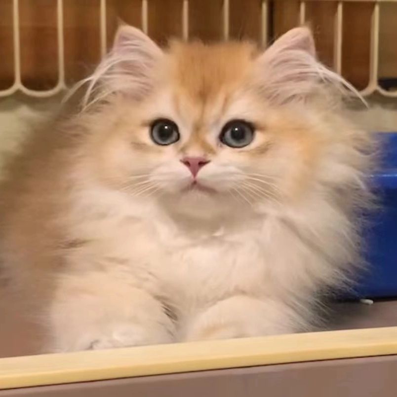 擁有金漸層+奶油白毛色的長毛小貓,渾身覆蓋著 濃密柔軟的貴族毛髮,宛如蓬鬆的雲朵般輕盈夢幻。牠擁有一雙 深邃迷人的藍綠色大眼睛,閃爍著靈動的光芒,彷彿會說話般吸引人,再搭配粉嫩的小巧鼻頭,更是萌力滿分!